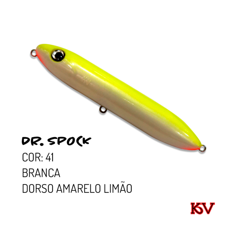 Provavelmente a primeira isca adaptada e lançada no Brasil com esferas de aço que produzem intensa sonorização e super reforçada.  Foi utilizada em gravação de programa Japonês na Amazônia (Barcelos). Devido ao sucesso, a Dr. Spock foi publicada com destaque na revista Magazine Lures do Japão. A KV se orgulha disto e de ter exportado inúmeras Dr. Spock e Dr. Spock Jr. para aquele país.  Muito usada para os grandes Tucunarés da Amazônia e Tairões, no mar para Anchovas, Olho-de-Boi, Xaréus, etc.