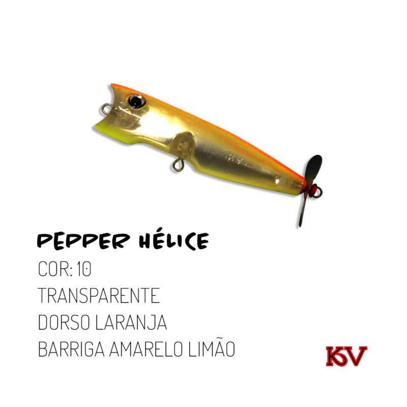 É um Popper com hélice muito usada para levantar cardumes devido ao grande estardalhaço que produz. Eficiente na pesca de Tucunarés, Traíras e outros predadores.